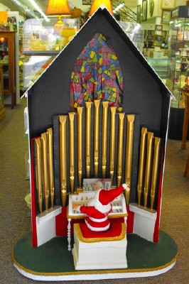 It seems like Christmas gets earlier every year. We have started decorating the shop already. We have lots of great vintage and collectible Christmas items. I personally love this darling Santa playing the organ. No sound but great action in a window near a tree.